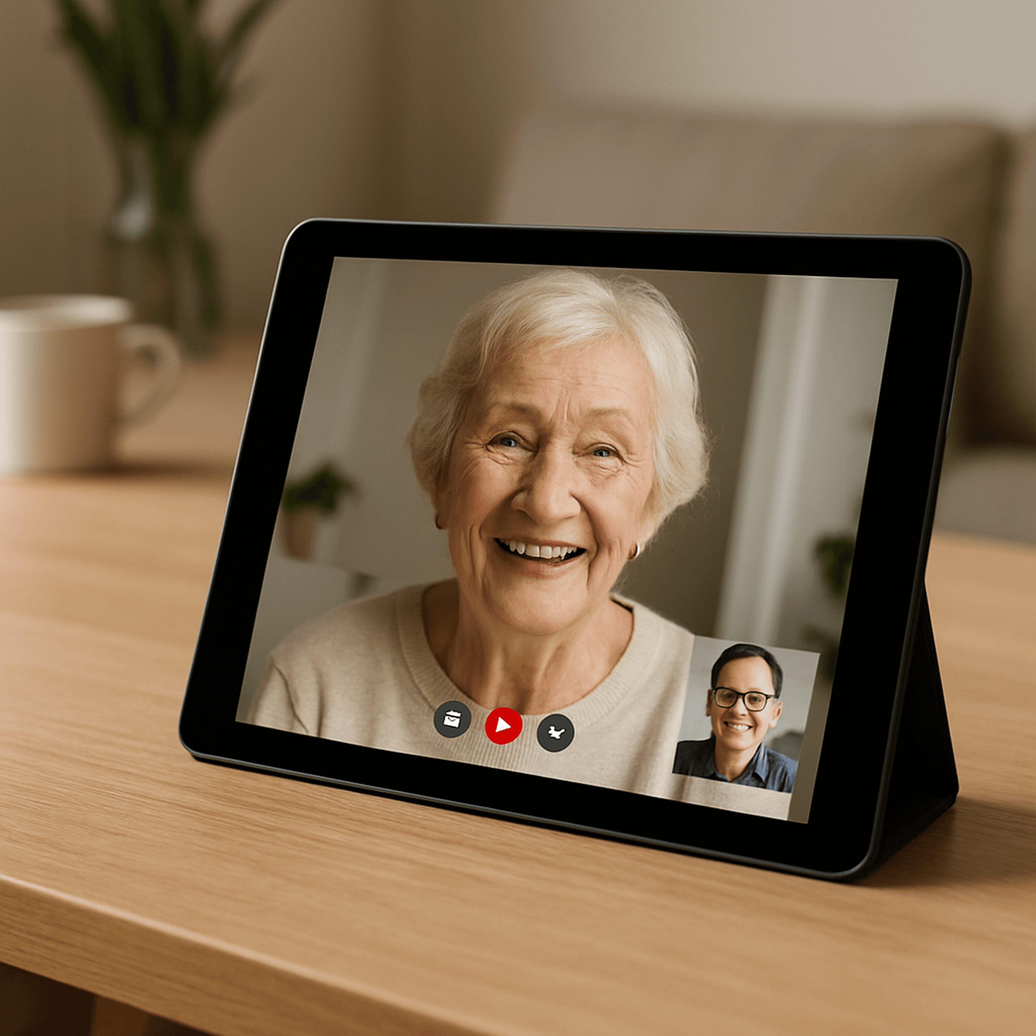 We record video of you speaking and use Tavus software to create a digital replica of your face so it can be used to comfort your loved one. It can be used to deliver daily video updates and provide video conversations with AI for when they want to have a conversation with a familiar face.