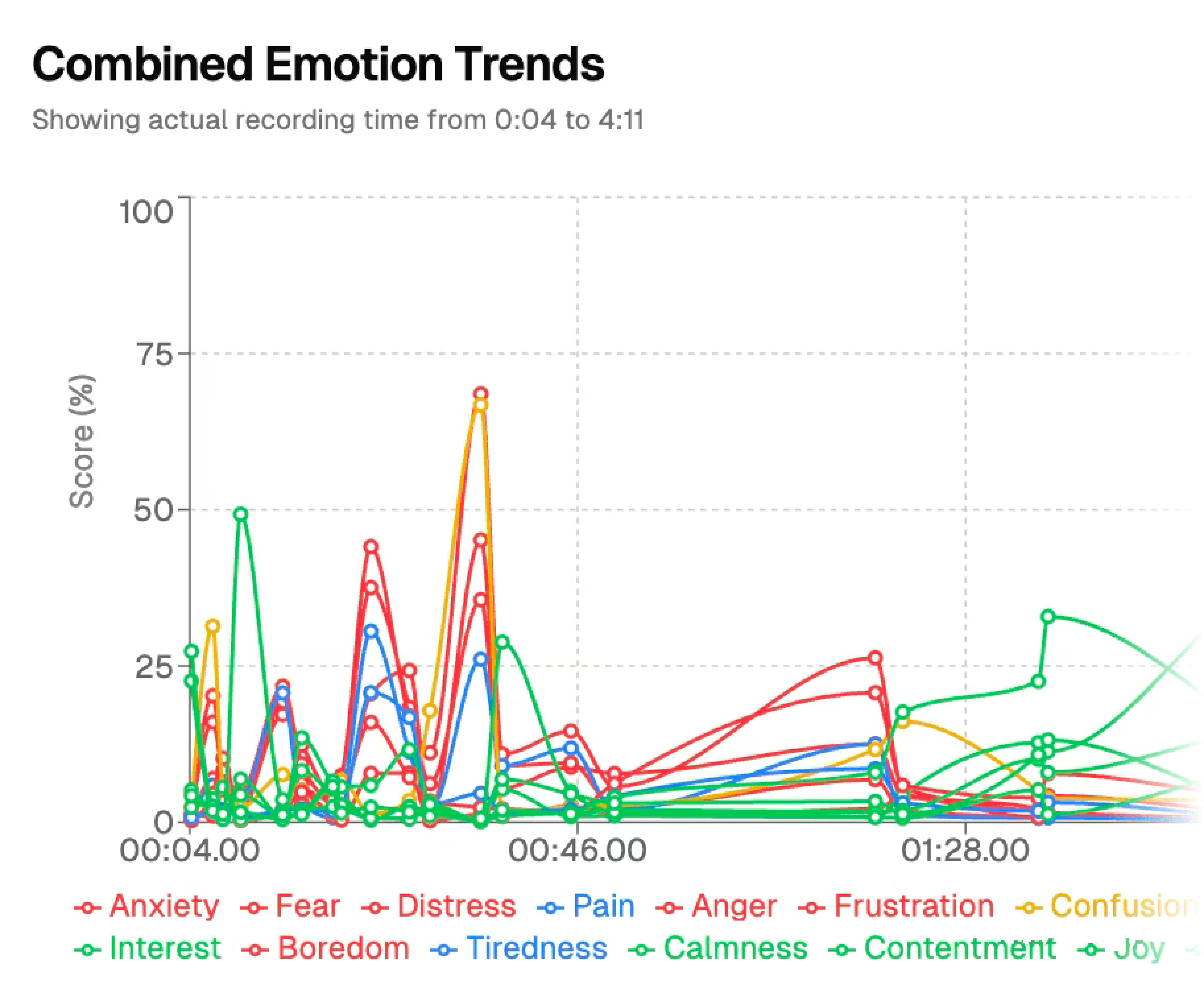 When people with dementia have conversations with AI, we measure the emotions in their voice using Hume. Hume can help us understand whether they are feeling confused, anxious, fearful, excited, and more. Hume can differentiate 28 kinds of vocal expression and these results are shared with your family to help you get a clearer picture of their emotional wellbeing.